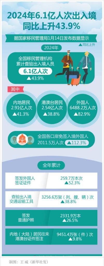 发布日期:2025-01-25 23:46 点击次数:176在2024年中国国际传播年度热词榜上,“中国游”一词名列前十。中国全面放宽优化免签政策,推出一系列便利外国人来华政策举措,“中国游”成为越来越多外国游客的优先选择。中国国家移民管理局最新数据显示,2024年,全国移民管理机构累计查验出入境人员6.1亿人次,同比上升43.9%;其中内地居民2.91亿人次、港澳台居民2.54亿人次、外国人6488.2万人次,同比分别上升41.3%、38.8%、82.9%。全国各口岸免签入境外国人2011.5万人次,同比上升112.3%。说走就走的“中国游”打开了世界了解中国的新窗口、新通道,向全球展现真实、多元和活力满满的中国形象。